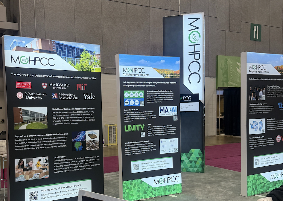 In addition to the in-person exhibit, MGHPCC offered a virtual booth experience, enabling global participants to explore featured projects and learn about the center’s state-of-the-art infrastructure. MGHPCC systems run millions of virtual experiments monthly, supporting tens of thousands of researchers throughout the region.