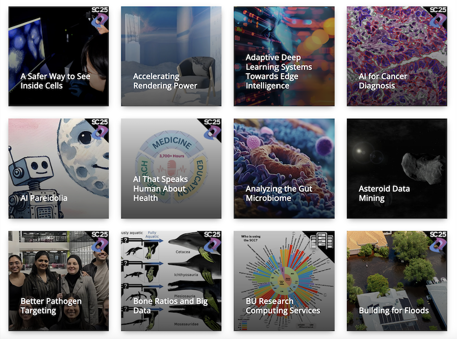 The MGHPCC booth will feature close to 80 computationally intensive research projects being conducted by member universities and other institutions in a wide range of disciplines, including climate, energy, medicine, materials, health, space, and computing. The booth will also feature a partnership between MGHPCC and the Massachusetts AI Hub to expand access to sustainable high-performance computing and data platforms necessary for AI innovation. For more detail, see the Massachusetts AI Hub web site.