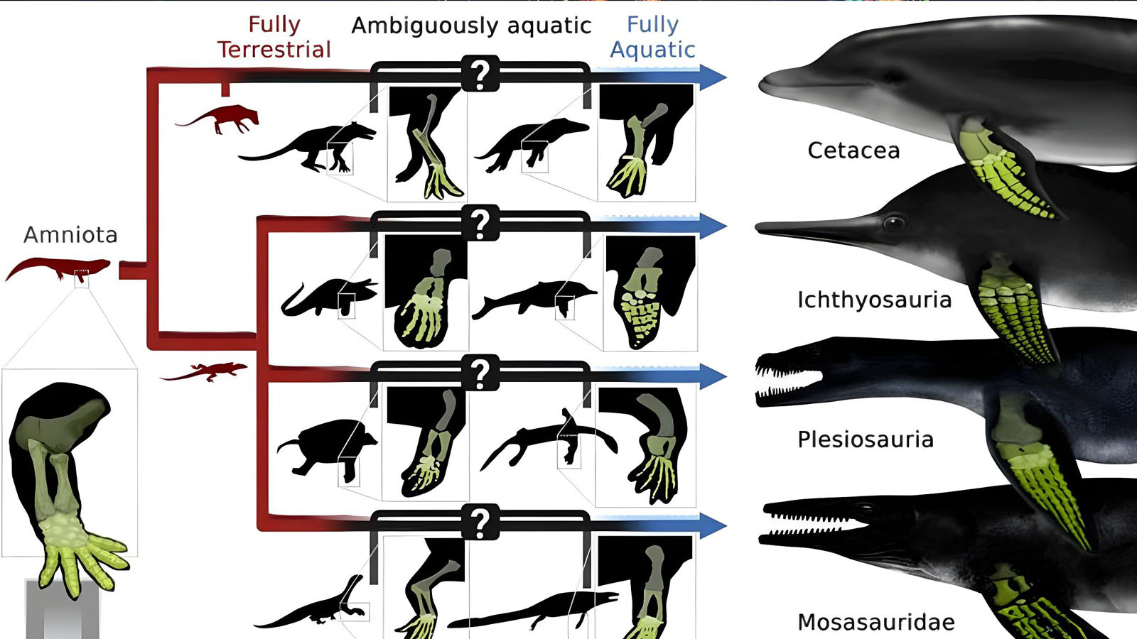 Their phylogenetic models revealed that while interdigital webbing cannot be reliably inferred from bones alone, flippered limbs and highly aquatic habits correlate strongly with specific forelimb proportions. Applying these models to extinct species clarified long-standing debates about the ecology of marine reptiles, showing multiple independent origins of flippers and aquatic lifestyles in groups like mosasaurs, sauropterygians, and non-avian theropods.