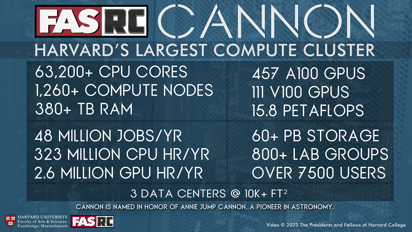 Harvard FASRC Research Computing was established in 2007 as part of the Faculty of Arts & Sciences (FAS) Division of Science, with the founding principle of facilitating the advancement of complex research by providing leading edge computing services. Research Computing staff maintain expertise in constantly changing computing technologies, while “speaking the language” of FAS researchers, to help them use computing more effectively. Computational resources are available for high performance and scientific computing, bioinformatic analysis, visualization, and data storage. Research Computing continually expands its services and technologies, ensuring researchers have access to a world-class computational environment. Through dedicated leadership and enterprising stewardship, Research Computing is committed to developing a large-scale computing infrastructure that helps researchers with the big data challenges of the 21st century.