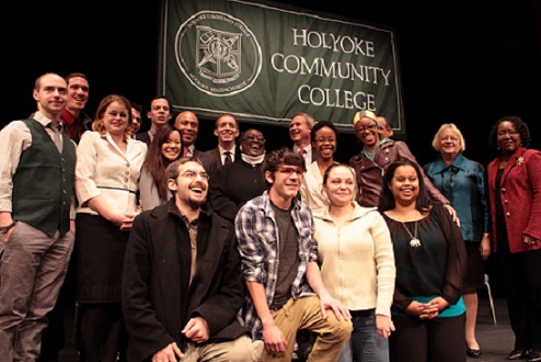 Image caption: Governor Deval Patrick is joined by representatives from Western Massachusetts awardee organizations, Holyoke Mayor Alex Morse and Holyoke Community College students at the Feb. 28th Massachusetts Life Sciences Center capital grant announcement.
